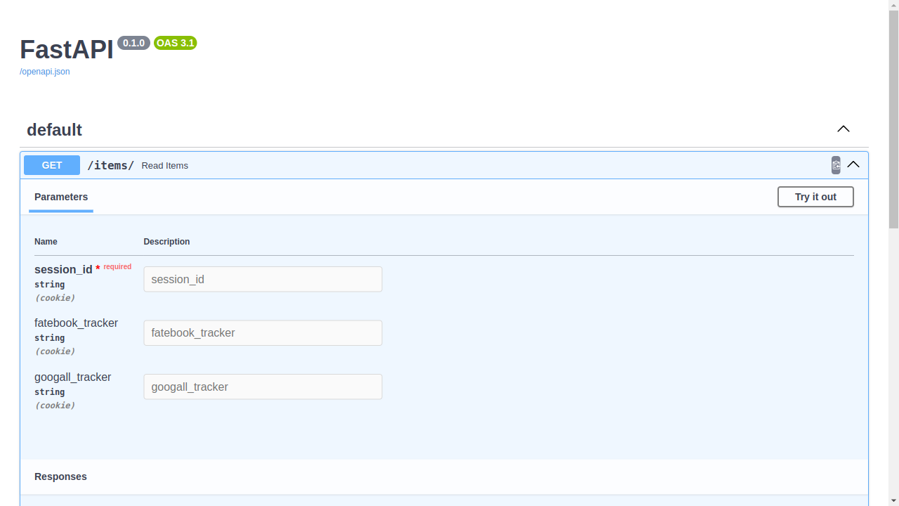 Se você for na IU de documentos da API em /docs você poderá ver a documentação para cookies das suas operações de rotas.